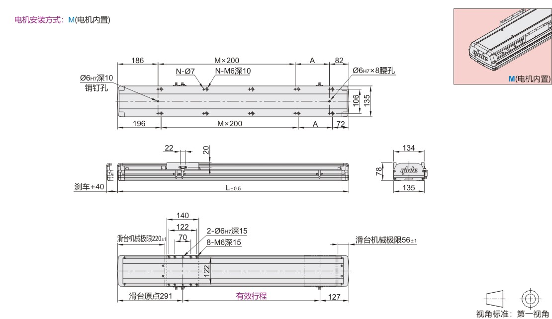 | Mxd | 485N·m | 说明: 1.实际负载需满足以下条件: (a)满足"详细参数表"中最大负载条件 (b)满足"容许力矩表"中力矩条件 如超出条件使用将大幅降低滑台寿命 2.表中数据以额定寿命10000km为基准。 3.表中重复定位精度为单方向数值。 4.丝杠传动型滑台达到一定行程后,最高速度 需降低。以免滑台发生共振,不同行程对应 的最高速度请参考下表。 5.滑台额定加速度0.3G,短行程滑台可能无法 达到最高速度。 6.滑台如果竖直使用,请选择带刹车电机。 |