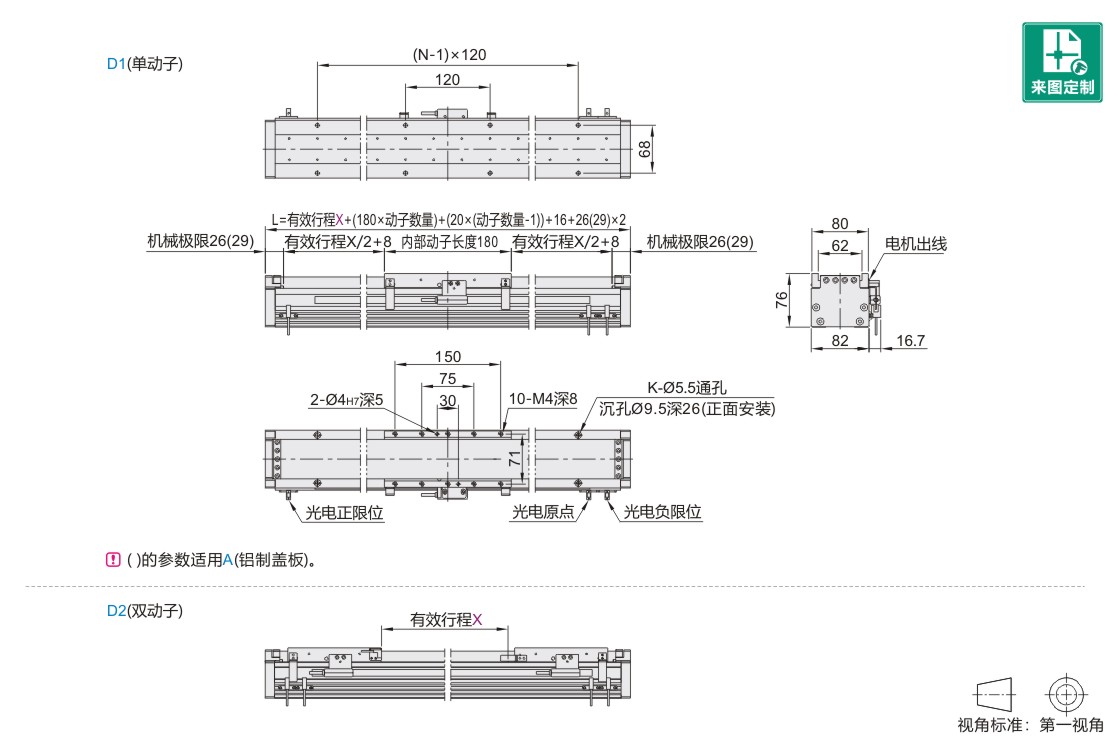 | 动子数量 | 尺寸 | 有效行程X | |||||||||||||||||||||||||