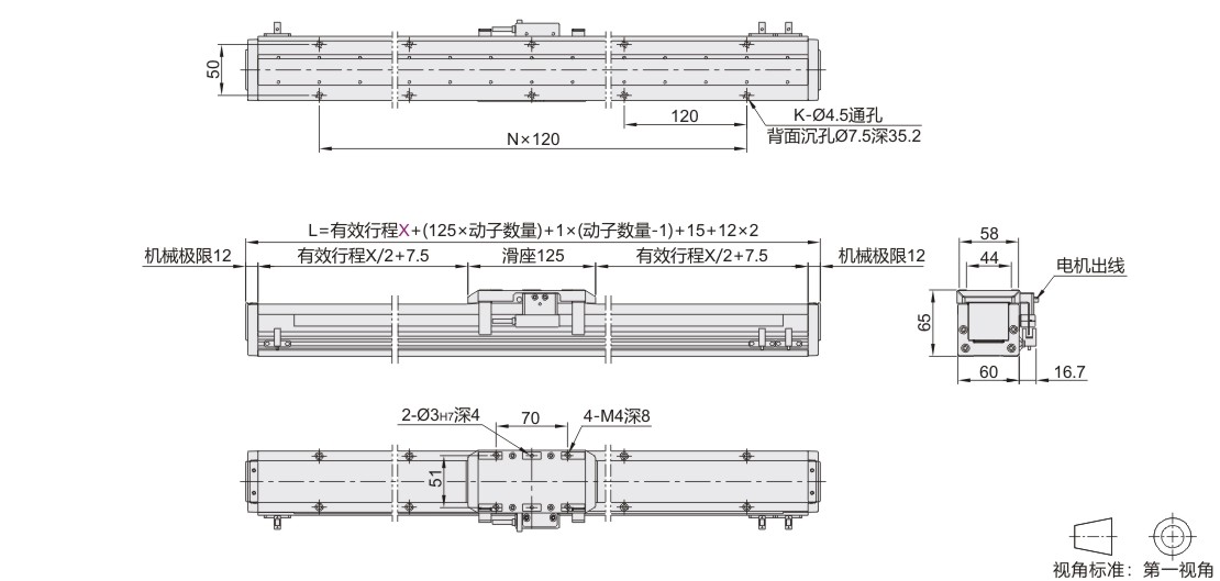 | 型号 | 动子数量 | 有效行程X (最小单位60) |