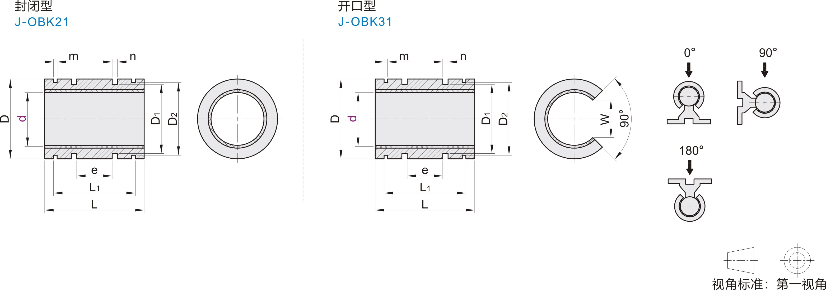 | J-OBK21 | 精密型 | 封闭型 | 铝合金 | PTFE | 阳极氧化 | -200℃~200℃ |
