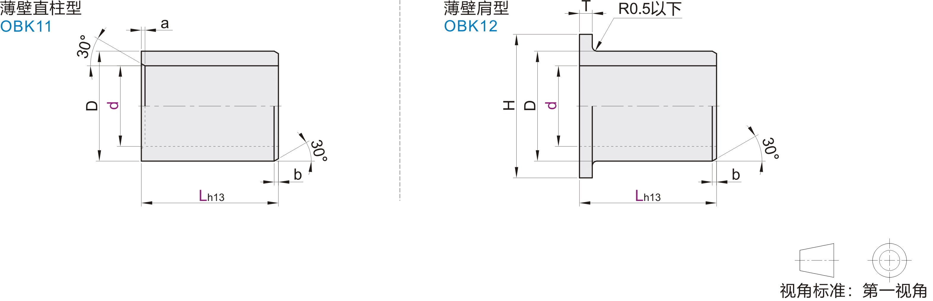 | OBK11 | 耐磨损型 | 薄壁直柱型 | 聚缩醛树脂(POM) 含润滑剂与特殊填充剂 |