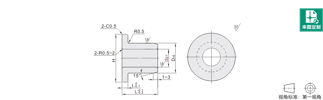 与本产品相配轴径公差:f8、g6(仅供参考)。