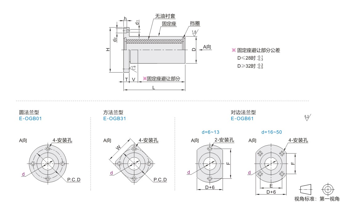 带( )d尺寸不适用对边法兰型E-OGB61。