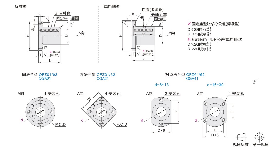 | OGA01 | 单挡圈型 | 圆法兰型 | 无 | |||