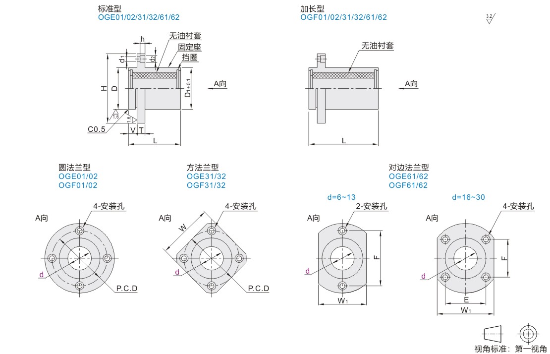 | OGF01 | 加长型 | 圆法兰型 | 无 | ||||||||||||||