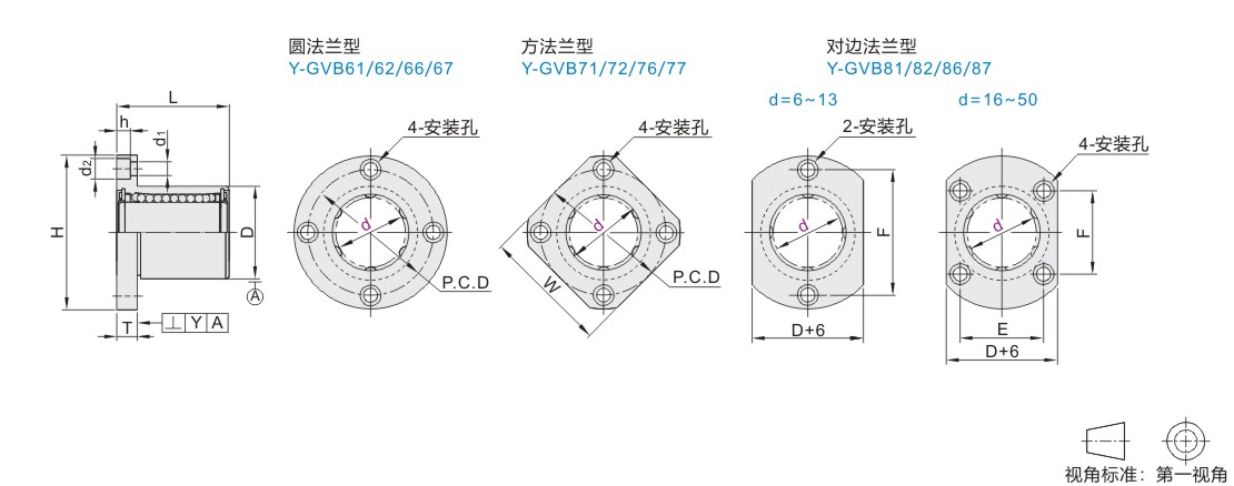 | 圆法兰型 方法兰型 Y-GVB61 Y-GVB71 Y-GVB62 Y-GVB72 Y-GVB66 Y-GVB76 Y-GVB67 Y-GVB77 对边法兰型 Y-GVB81 Y-GVB82 Y-GVB86 Y-GVB87 |