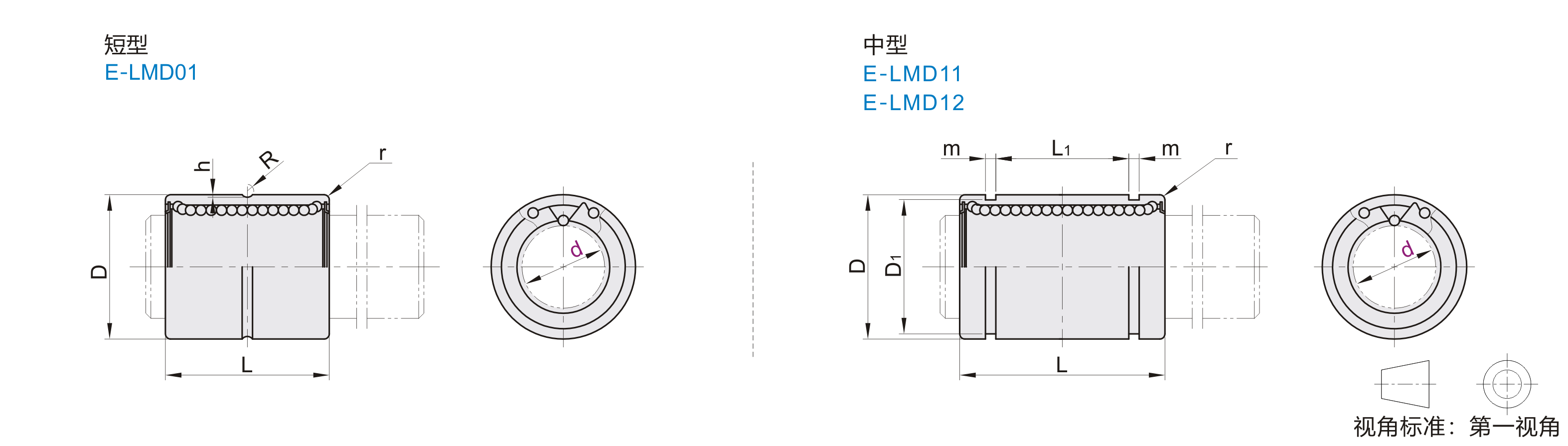 E-LMD01 短型 GCr15 SUJ2 56HRC~ GCr15 树脂 丁腈橡胶 -15~80℃