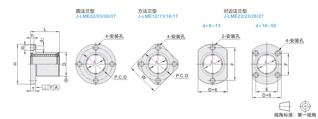 经济款:①端面法兰直线轴承:螺纹紧固连接