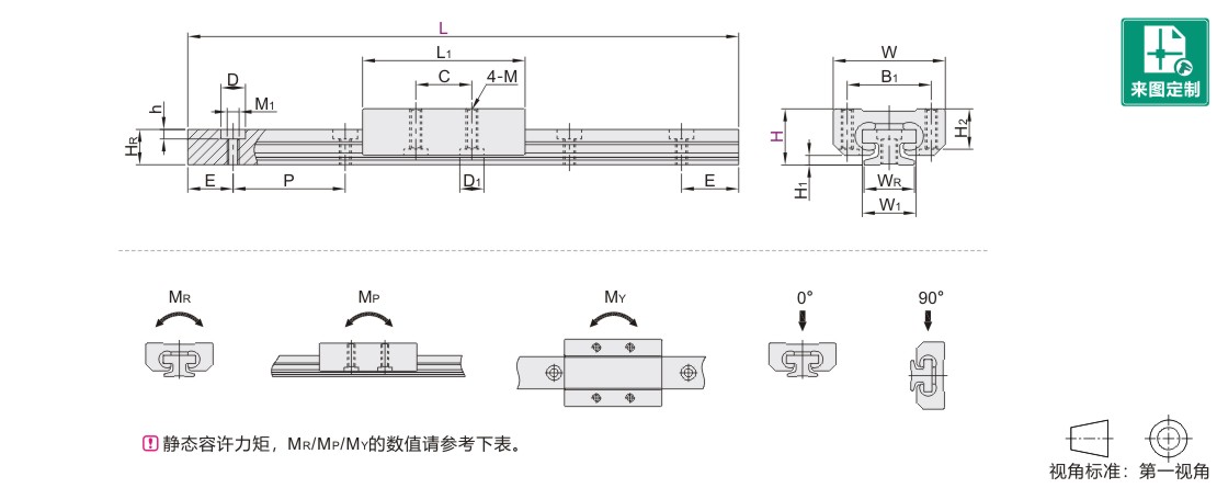 H1 | 滑块尺寸 | 滑轨尺寸 | 静态载荷 (KN) |