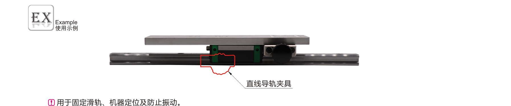 夹紧直线导轨,可将滑块固定在自由位置。再手动进行简单的位置保持时有效。
