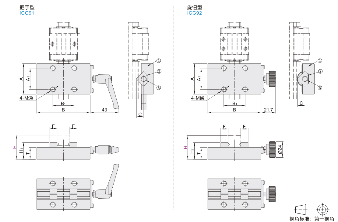| ICG91 | 把手型 | S45C | SCM435 | S45C | 无电解镀镍 | 发黑 | — |
