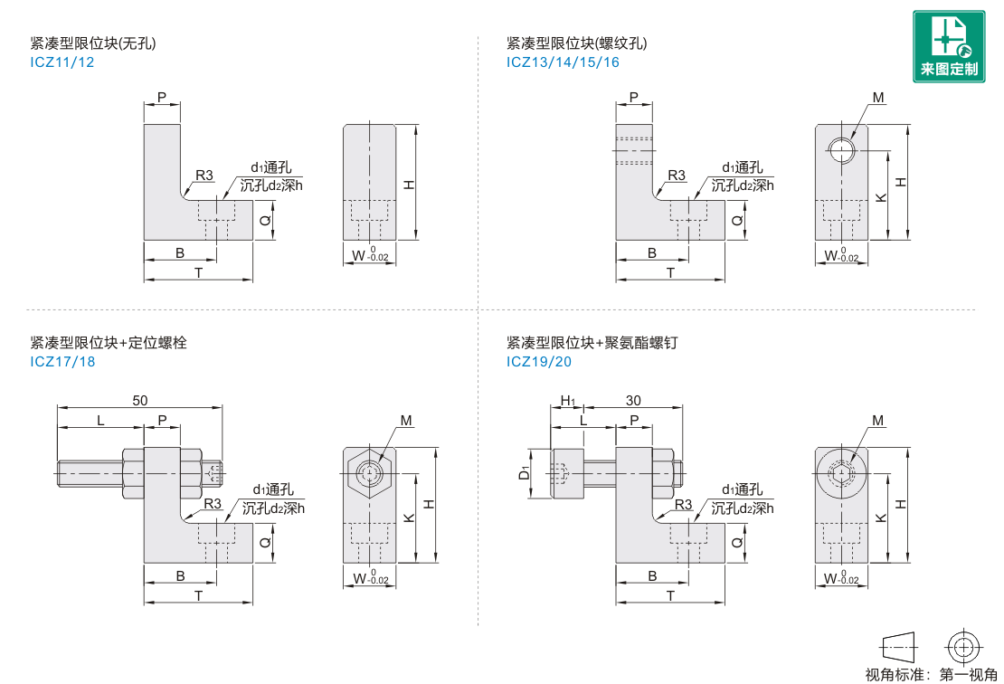 | ICZ19 | 紧凑型限位块+聚氨酯螺钉 | S45C | 镀硬铬 | TDC61 |