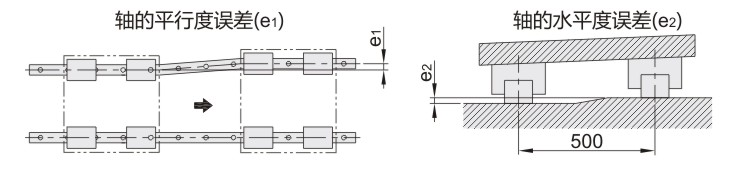 以下是对滚动阻力或寿命没有影响时安装面的容许误差值。