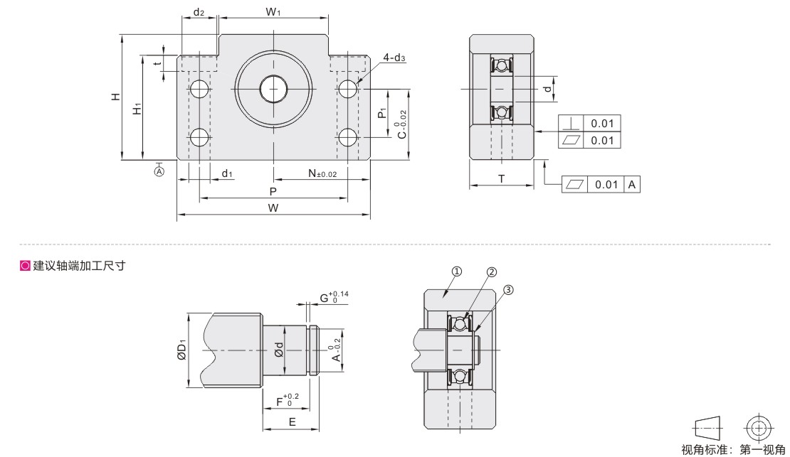 方形丝杠支座组件 支撑侧 侧面带孔型
