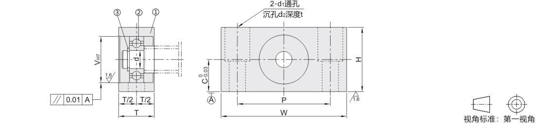 方形丝杠支座组件 矮型 支撑侧 精密型 标准型