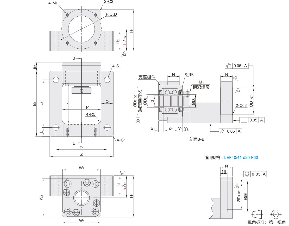 | LEF40 | 整合型传动座 | 简易型 | 铝合金 | S50C | 喷细砂本色阳极氧化 | 发黑 | 调整环:2个 锁紧螺母:1个 |
