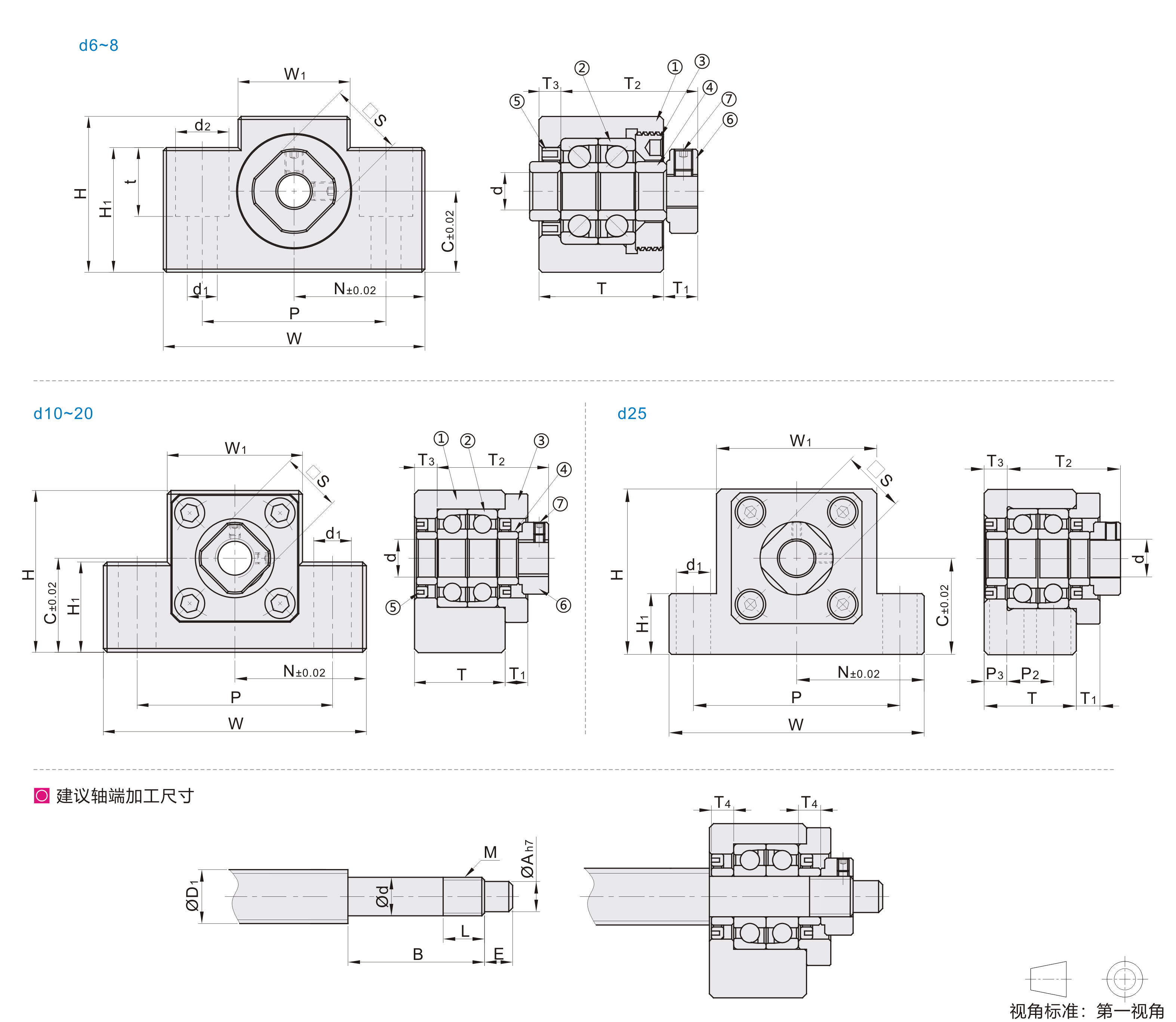 经济型方形丝杠支座组件 角接触轴承 低肩型 普通型 固定侧