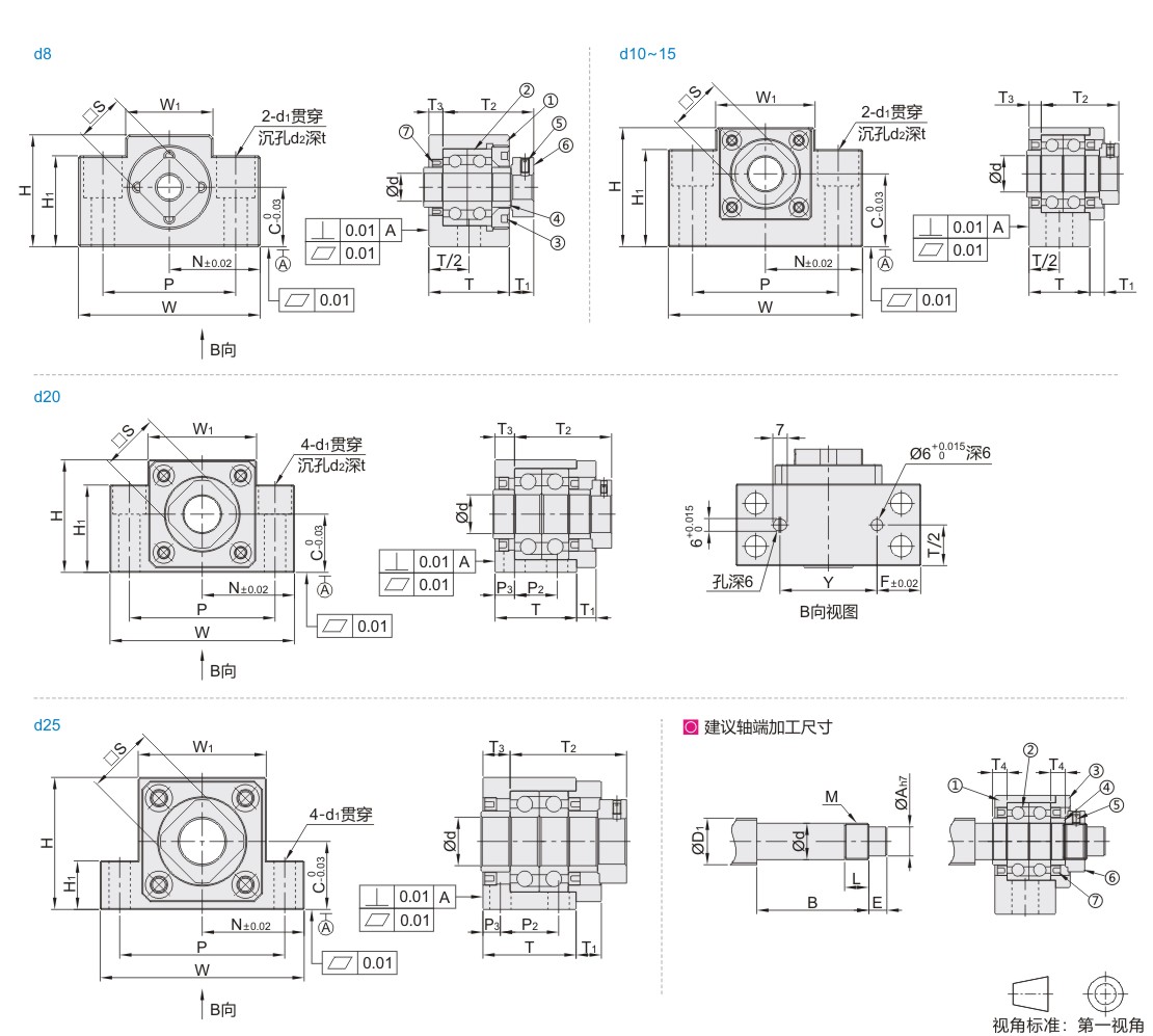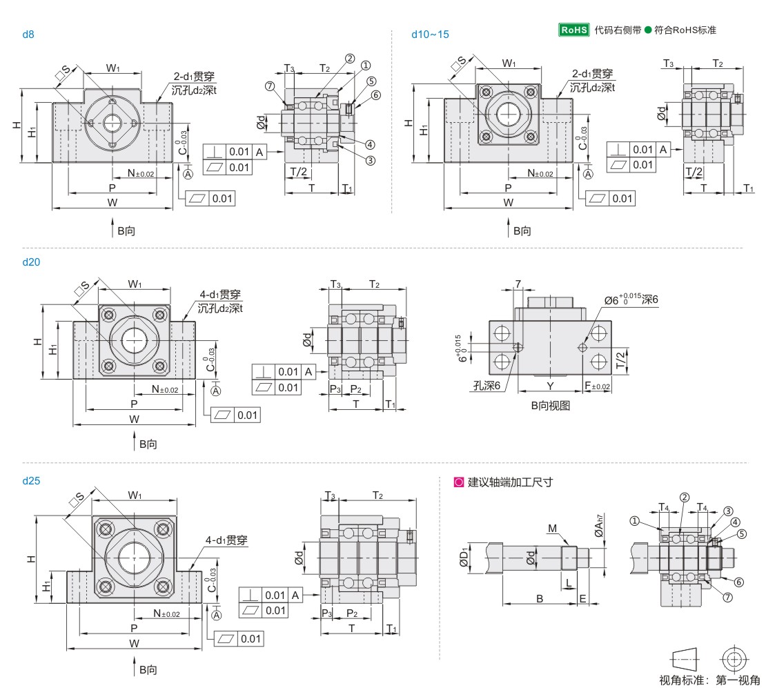 方形丝杠支座组件 精密型 带定位孔型 固定侧 标准型