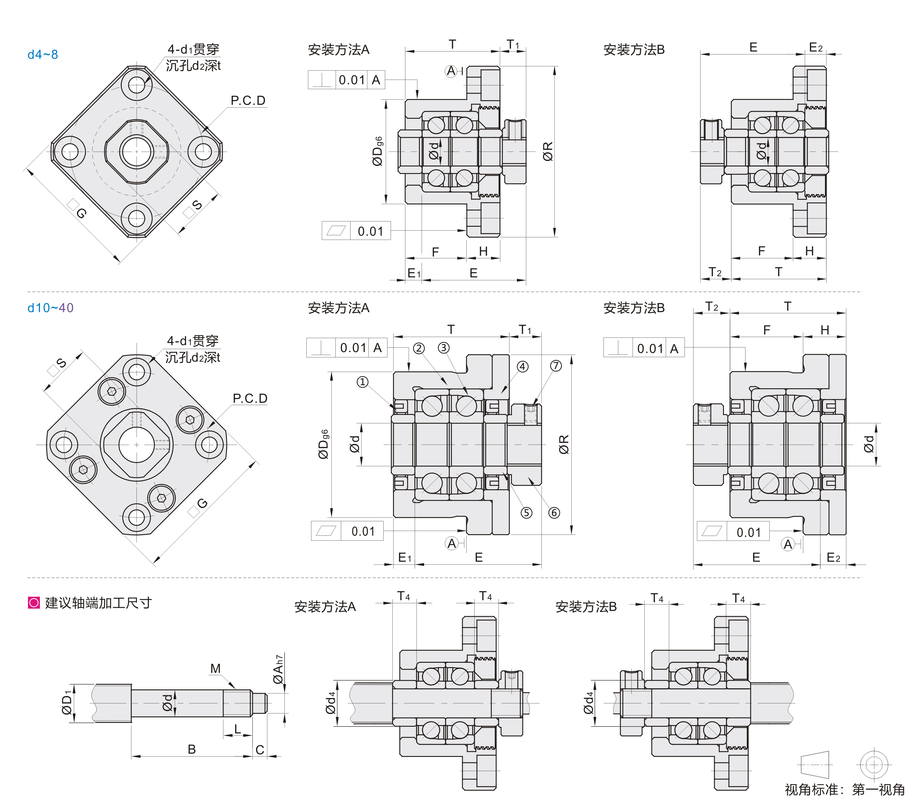 圆法兰丝杠支座组件 通用型 精密型 固定侧 标准型