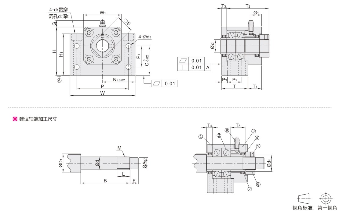 方形丝杠支座组件 侧面带孔型 精密型 固定侧(带注油嘴)