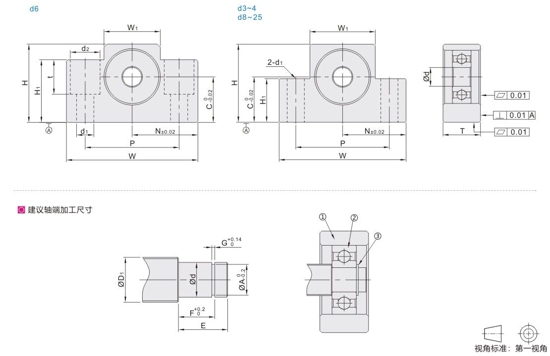 方形丝杠支座组件 支撑侧 低肩型 标准型