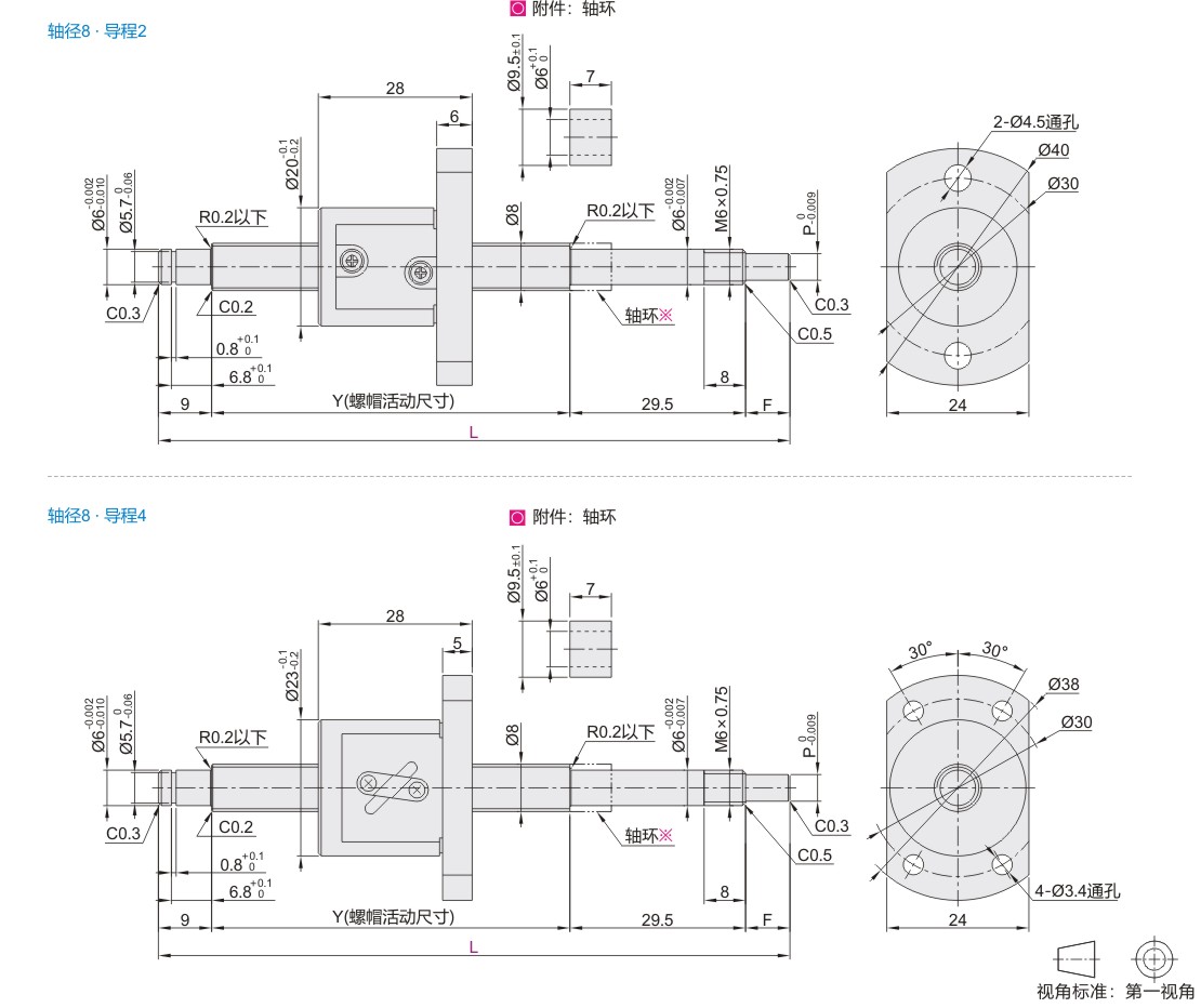 医疗 压轧滚珠丝杠 标准螺帽型 轴径8·导程2/4