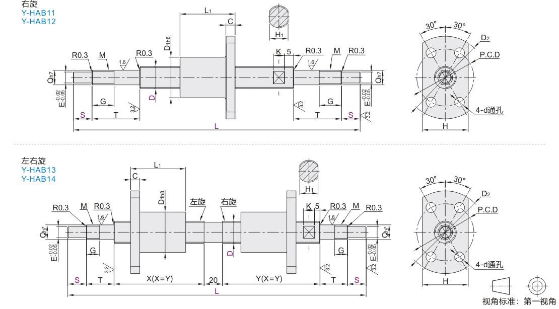 | 右旋 Y-HAB11 Y-HAB12 左右旋 Y-HAB13 Y-HAB14 |
