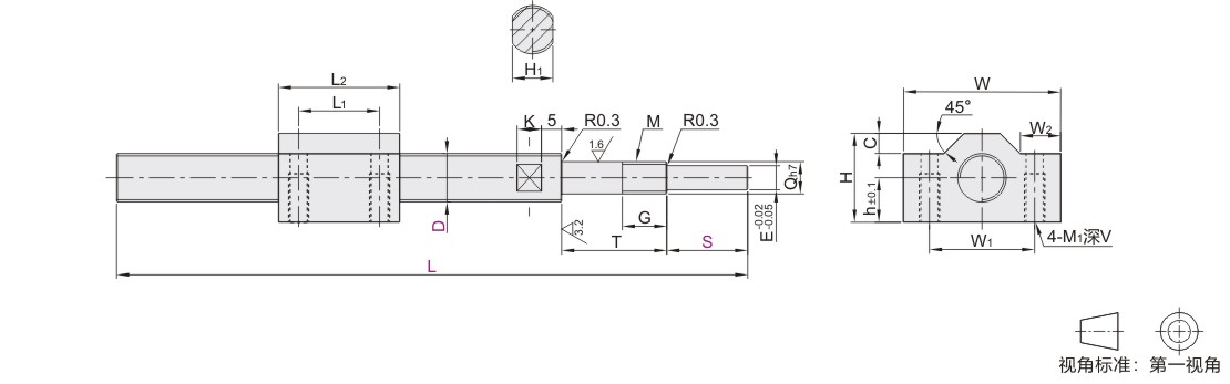 医疗 30度梯形丝杠组件 固定侧+自由侧 加宽方型螺帽