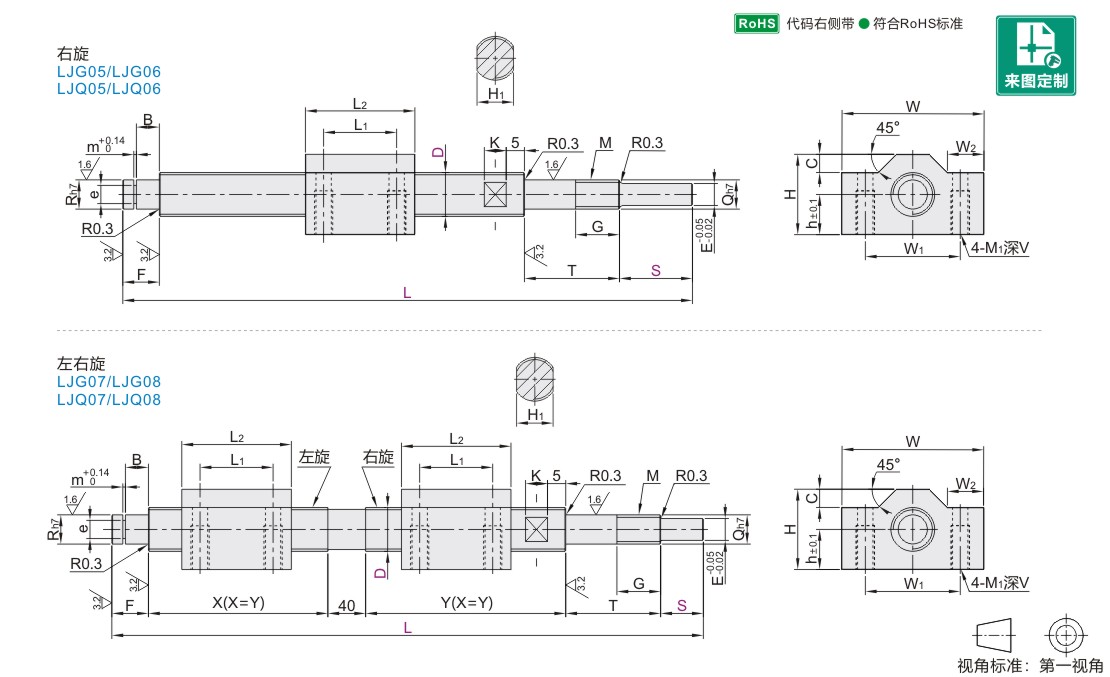 | LJG05● | LJG07● | 固定侧+支持侧 | 加宽方型 螺帽 |