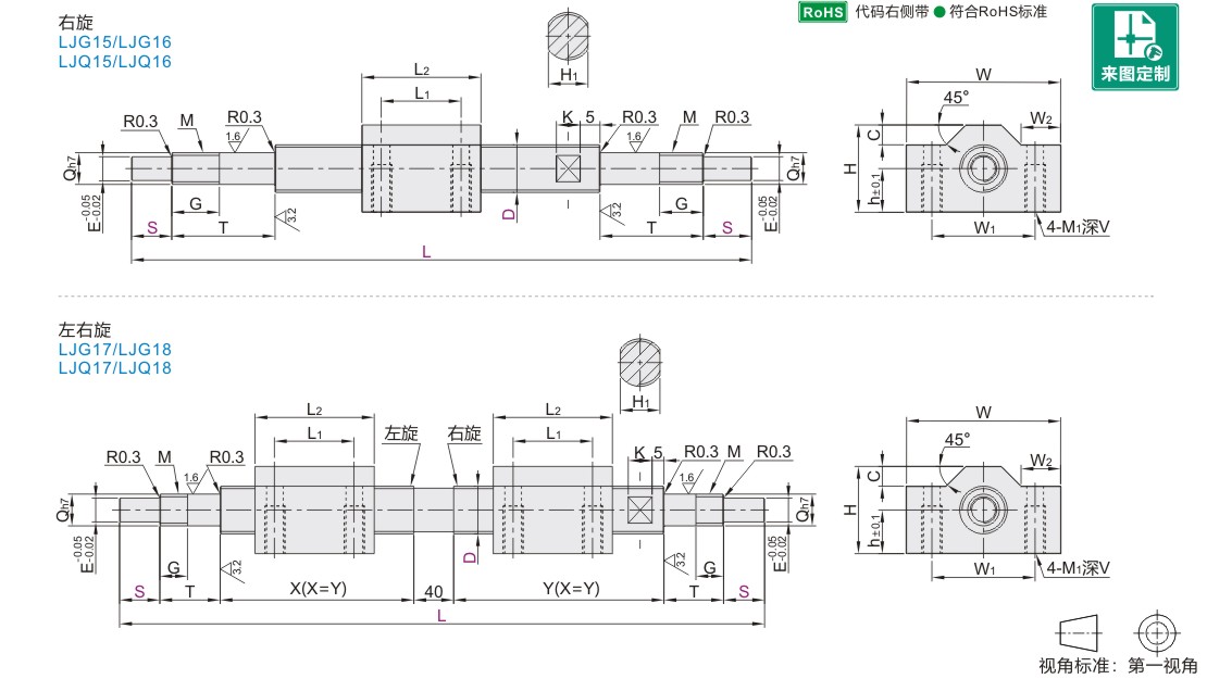 | LJG15● | LJG17● | 固定侧+固定侧 | 加宽方型 螺帽 |