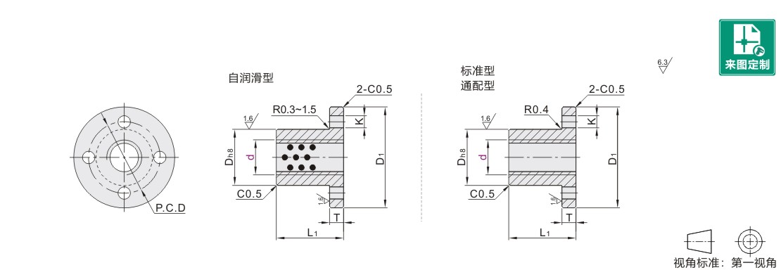 | LJL61 | 法兰型 | 圆型 | 自润滑型 | 左旋 | 黄铜 (嵌入固体润滑剂) |