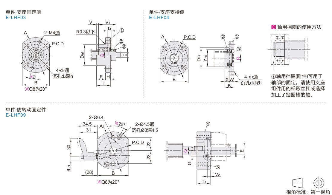 | E-LHF22 | 套装 | 支座固定侧+防转动固定件 | 适用小型数字式位置显示器 | E-LHF03 | E-LHF09 | — |