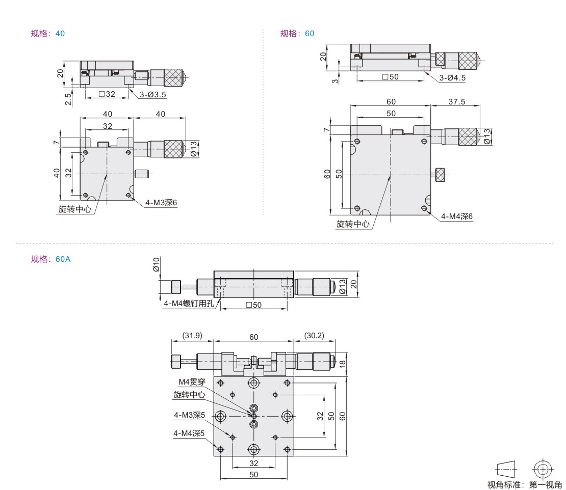 | ELF21 | 千分尺进给型 | 台面方型 | θ轴 | 铝合金 | 黑色阳极氧化 |