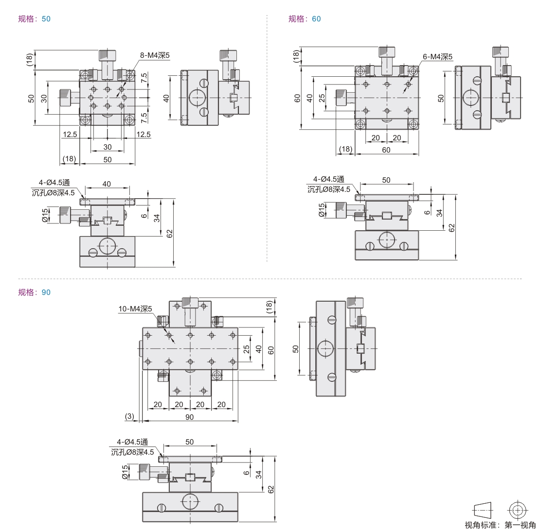 经济型手动位移台 XY轴 燕尾槽式 齿轮齿条驱动式 标准型 铝合金/黄铜材质 黑色阳极氧化处理