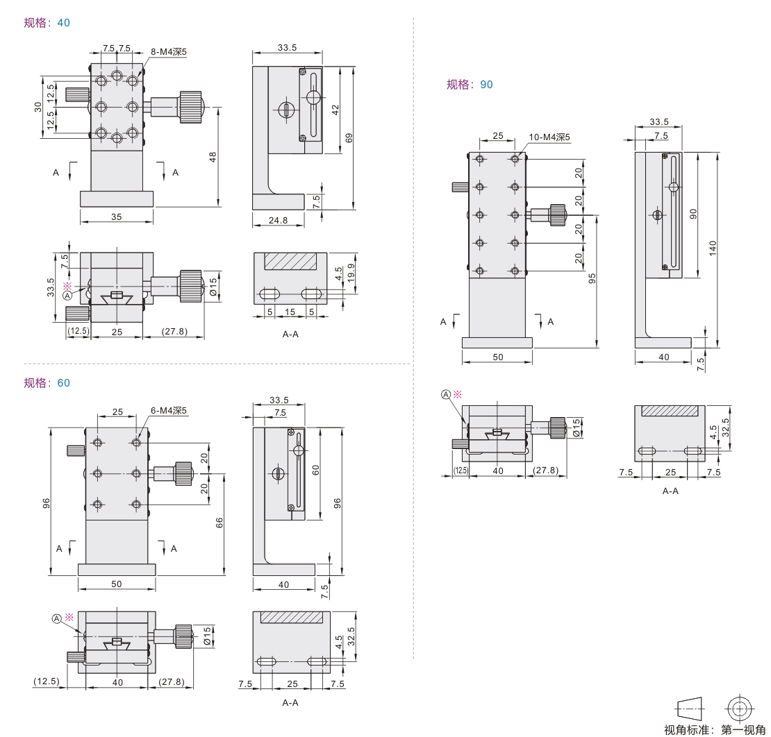| EJQ01 | 齿轮齿条驱动型 | Z轴 | 铝合金 | 黄铜 | 黑色阳极氧化 |