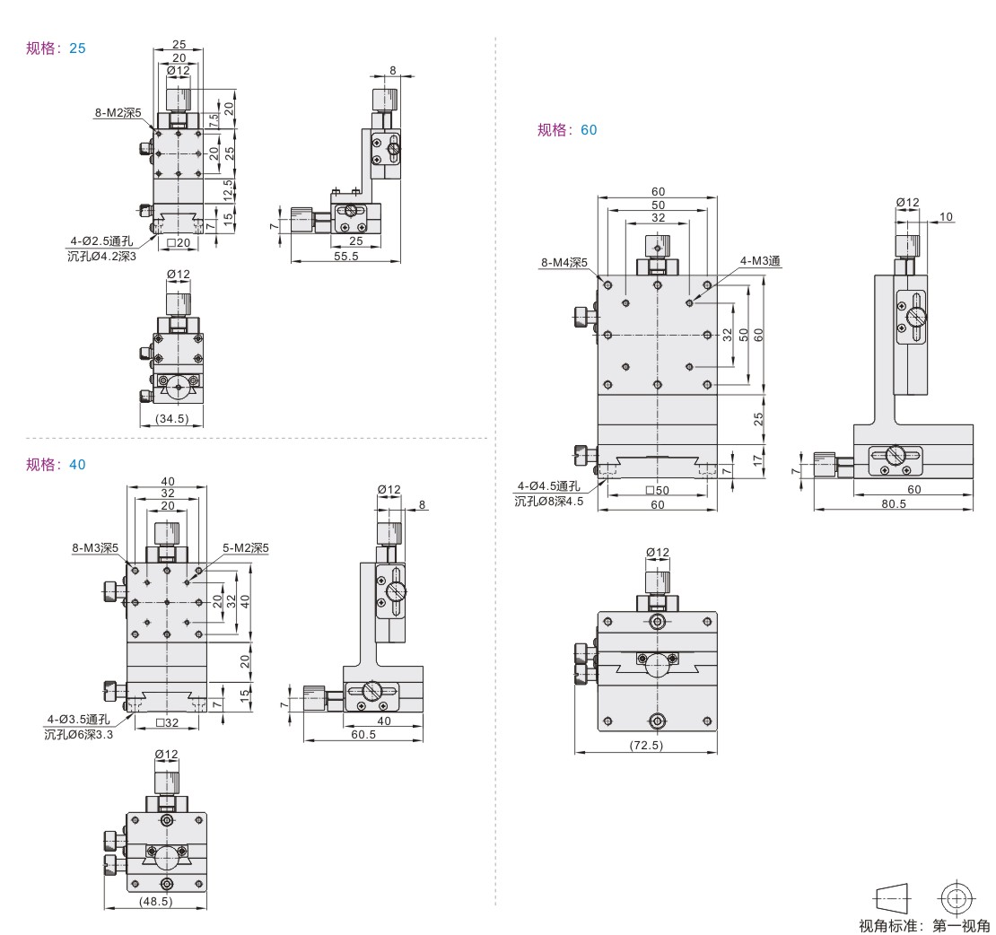 使用方法:将锁紧旋钮松开后,调节驱动机构(微分头/进给丝杠)至目标位后拧紧锁紧旋钮。