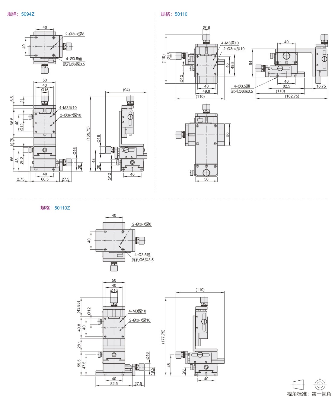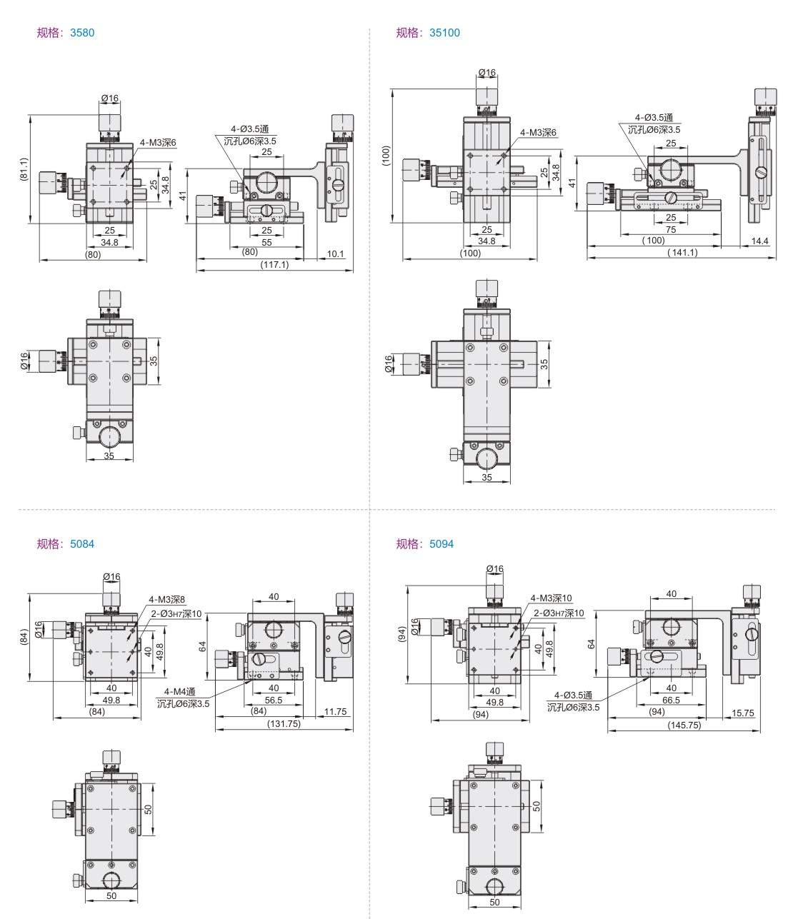 | EJL52 | 进给丝杠驱动型 | 长行程型 | XYZ轴 | 铝合金 | 黄铜 | 黑色阳极氧化 |