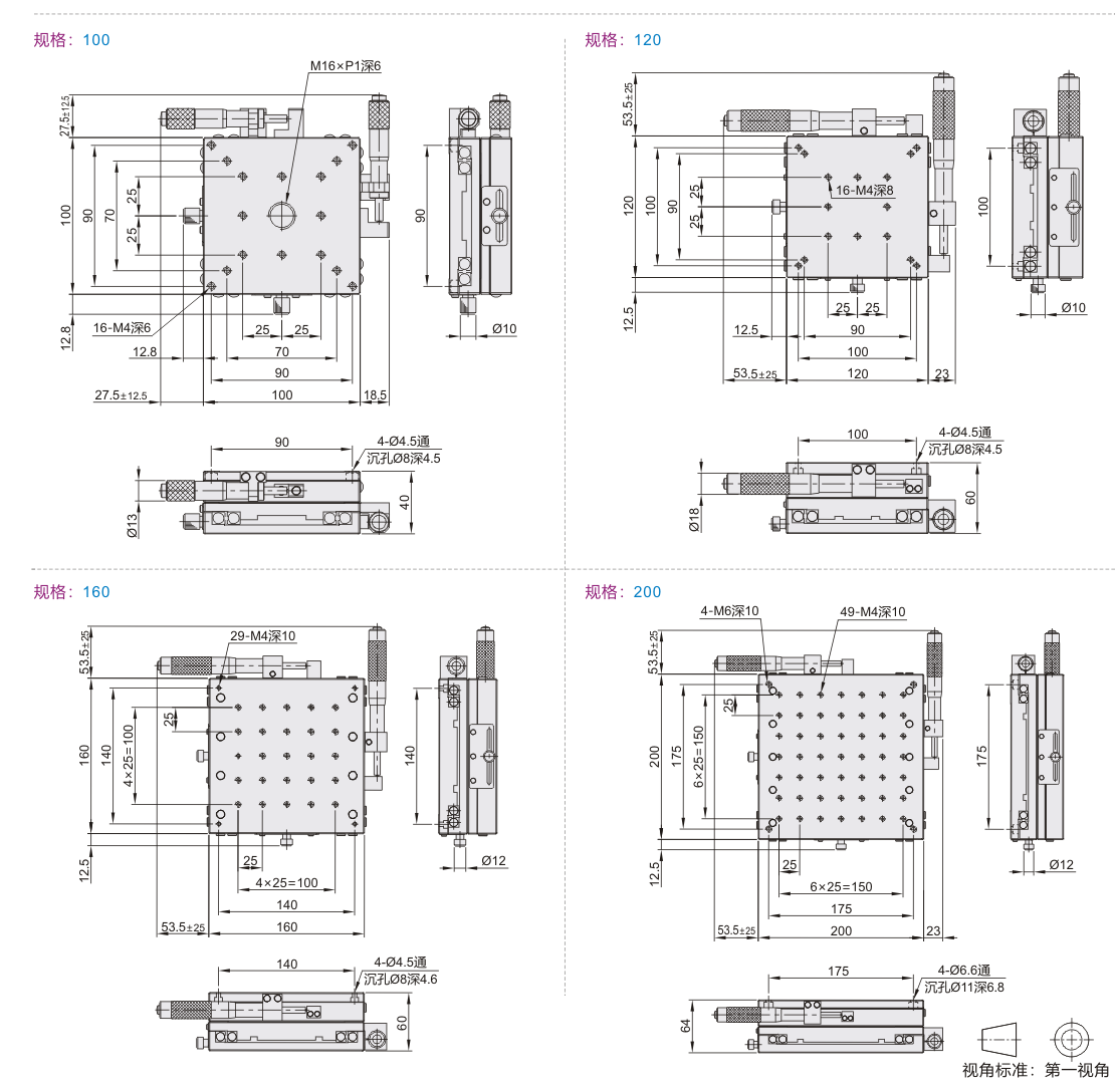 | EJB01 | 千分尺进给型 | 标准型 | XY轴 | 铝合金 | 黑色阳极氧化 |