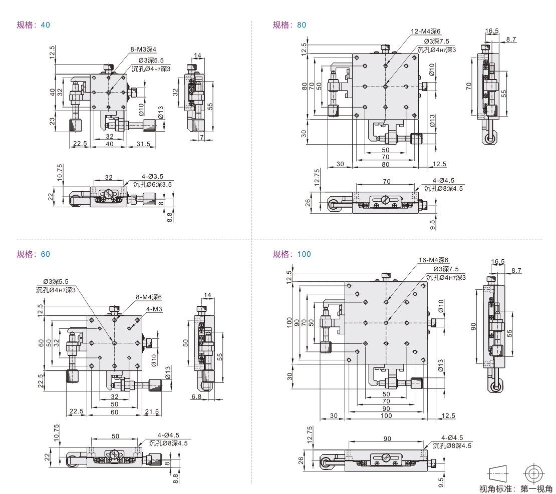 手动位移台 XY轴 线性滚珠引导式 进给丝杠驱动式 薄型 精密型 SUS440C/黄铜材质 无电解镀镍处理
