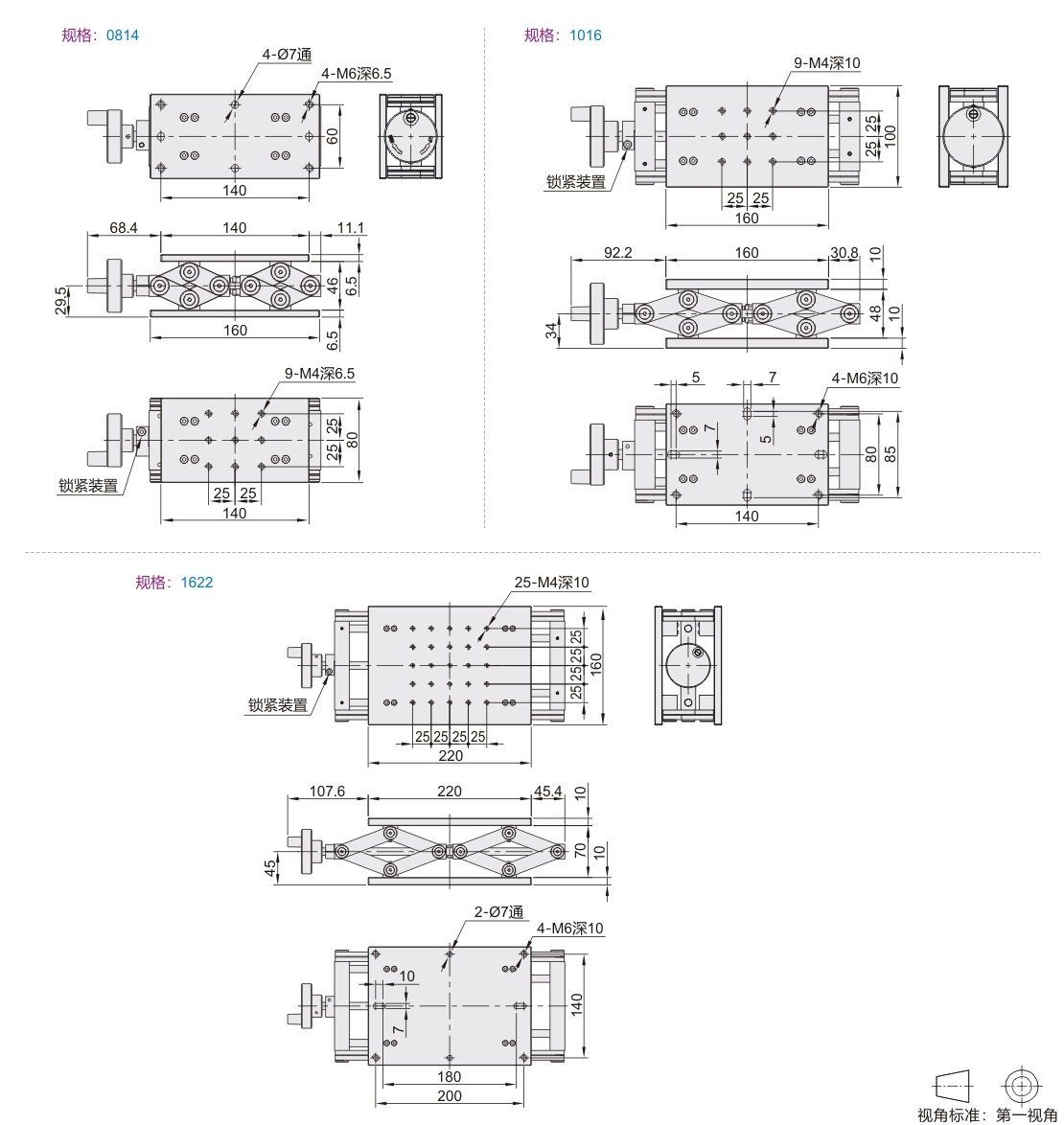 使用方法:将锁紧旋钮松开后,调节驱动机构(微分头/进给丝杠)至目标位后拧紧锁紧旋钮。