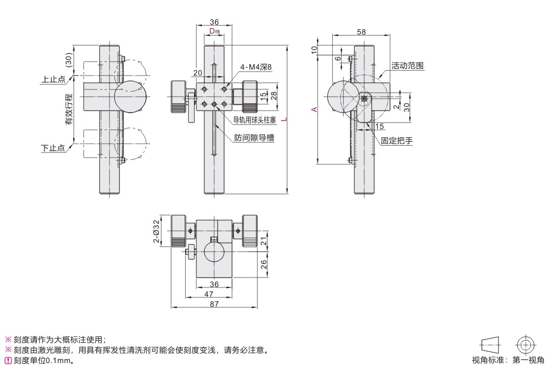 简易调整组件 Z轴 带刻度支柱型 齿轮齿条型 无防尘盖板 本色阳极氧化处理