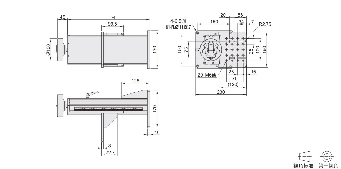 简易调整组件 Z轴 手轮型 重载型 带防尘盖板 梯形丝杠型 铝合金材质 黑色阳极氧化处理