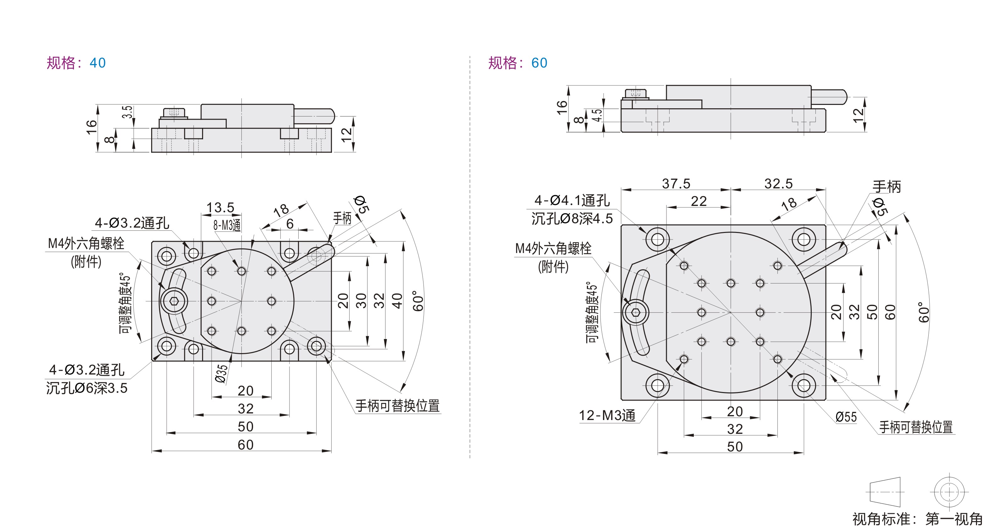 简易调整组件 角度调整型 旋转45° 铝合金材质 黑色阳极氧化处理
