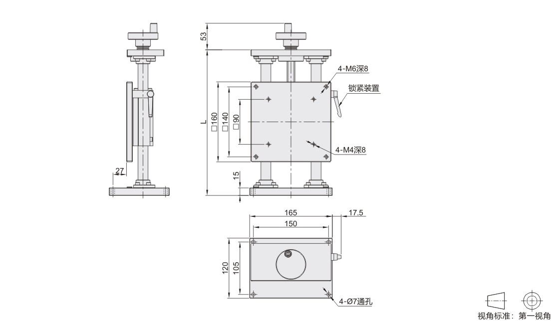 简易调整组件 Z轴 直线轴承型 梯形丝杠传动 铝合金材质 黑色阳极氧化处理