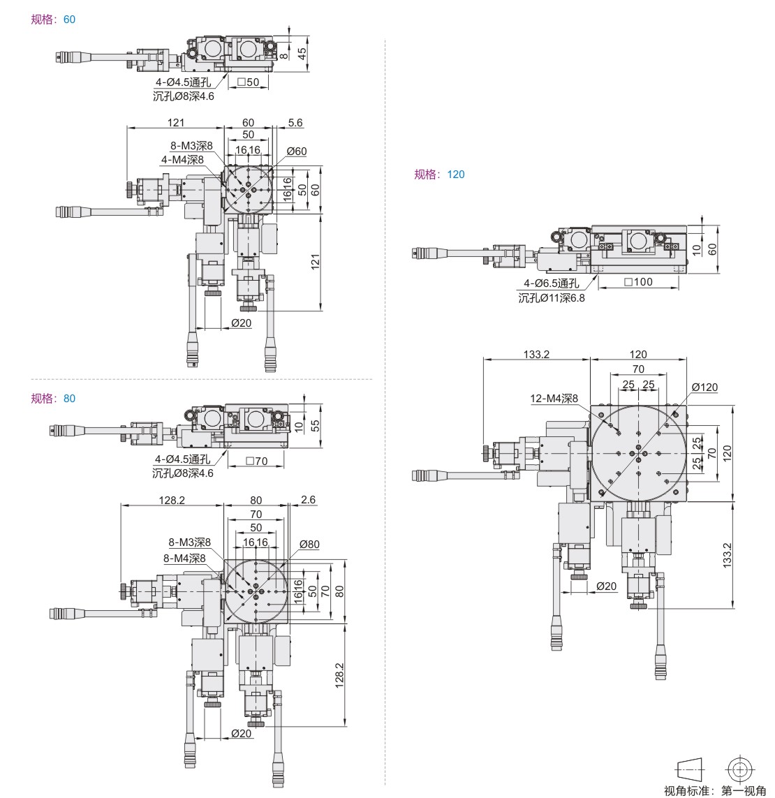电动位移台 XYθ轴 交叉滚柱+角接触轴承引导式 标准型 铝合金材质 黑色阳极氧化处理