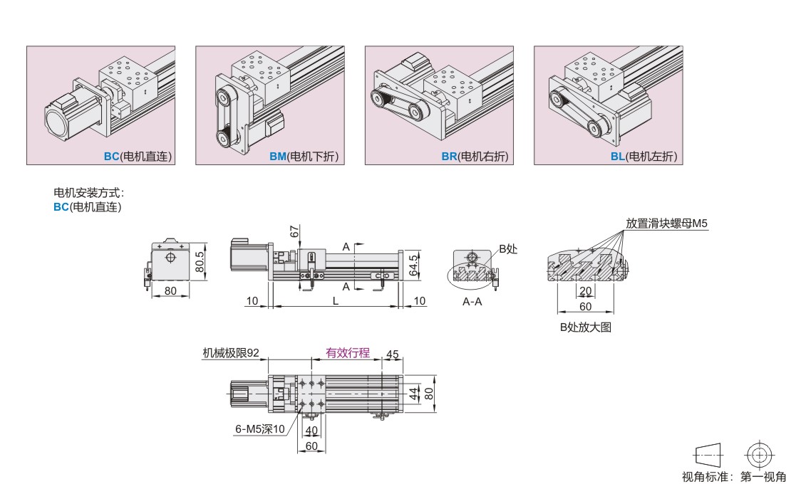 | 代码 | 传动方向 | 传动方式 | 底座 | 导轨 | 滑块 | |||