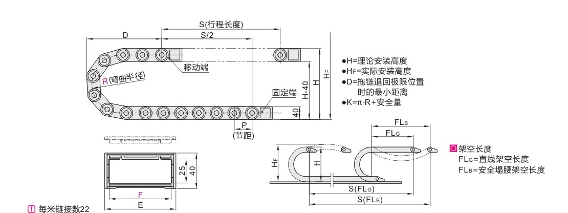 本系列拖链标准型号包含一套接头(移动端、固定端各一个)