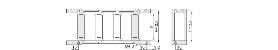 加强型拖链结构与普通拖链不同,同规格情况下,相对普通拖链架空长度更长。