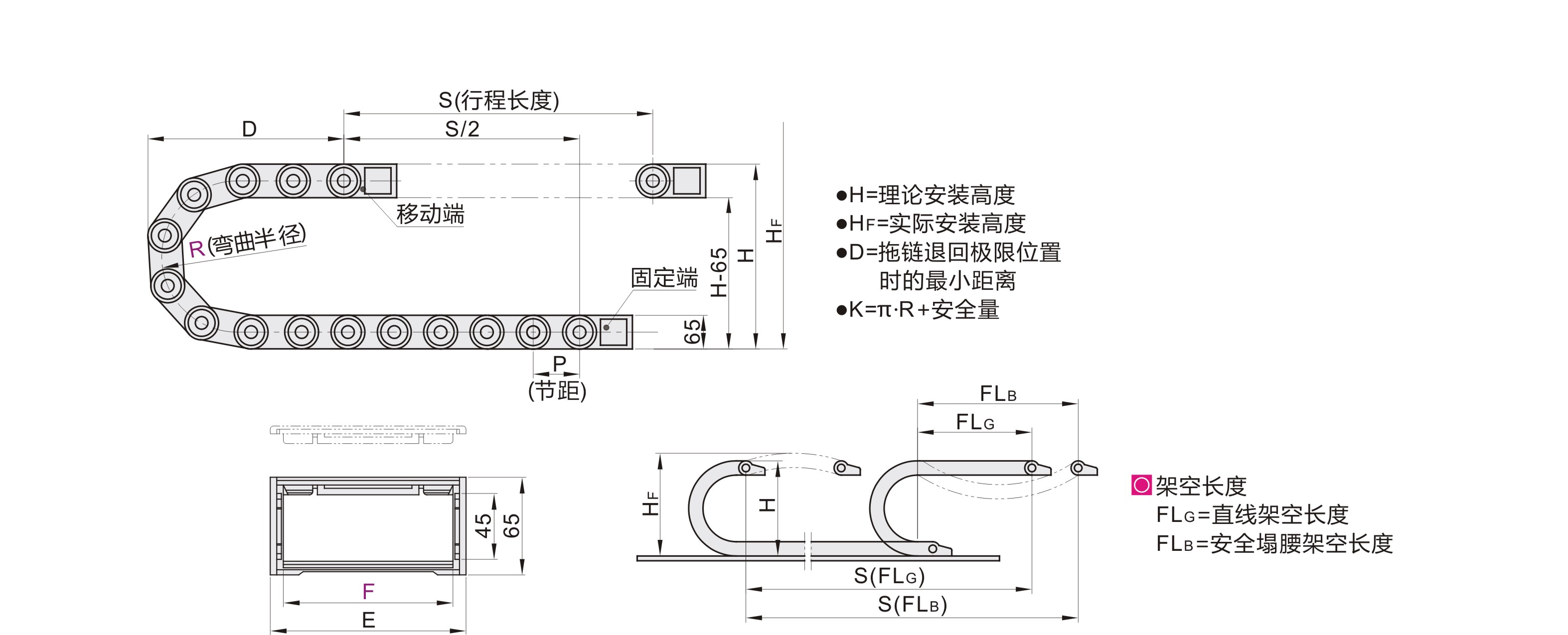 国产拖链 加强型 内高45 桥式/全封闭式 内外径打开