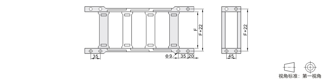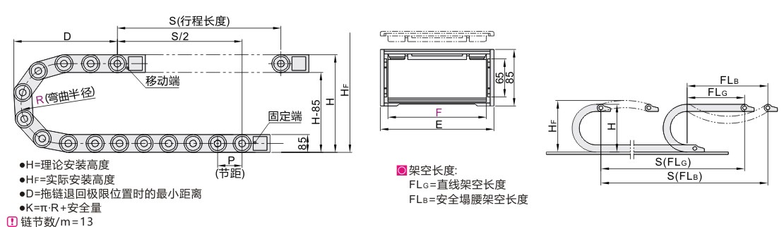 加强型拖链结构与普通拖链不同,同规格情况下,相对普通拖链架空长度更长。